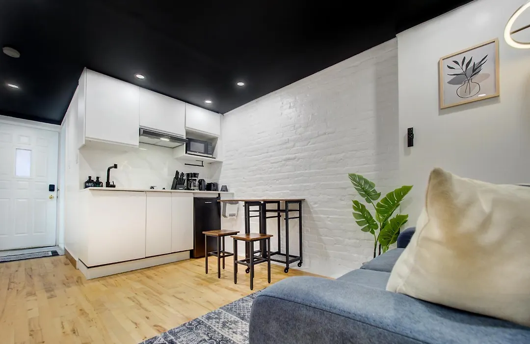 Stylish-24 1-Bedroom In Homa Montreal apartment features views of the garden and such modern comforts as climate control.